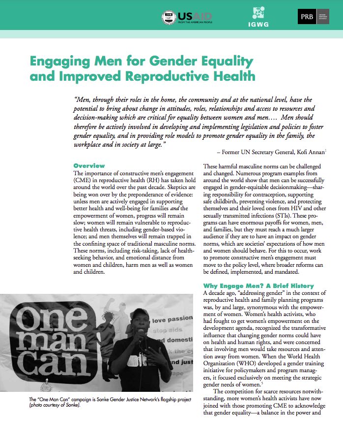 Engaging Men for Gender Equality and Improved Reproductive Health