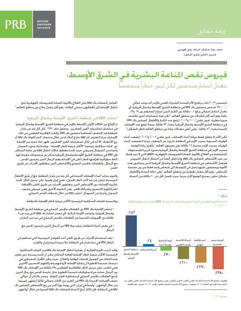 Hamidreza Setayesh is UNAIDS Country Coordinator for Sudan. Farzaneh Roudi-Fahimi is program director for the Middle East and North Africa at the Population Reference Bureau. Shereen El Feki is an author, broadcaster, academic, and former vice chair of the Global Commission on HIV and the Law. Lori Ashford is an independent reproductive health consultant. This article is excerpted from a forthcoming report to be published by PRB on HIV/AIDS in the Middle East and North Africa.