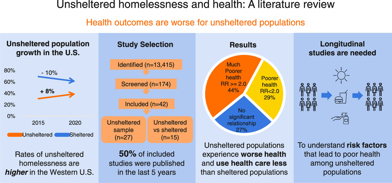 To that end, Jessica Richards and Randall Kuhn of the University of California Los Angeles conducted a literature review to see what current research shows about unsheltered homelessness and health. From an evaluation of 42 studies, here are their findings: