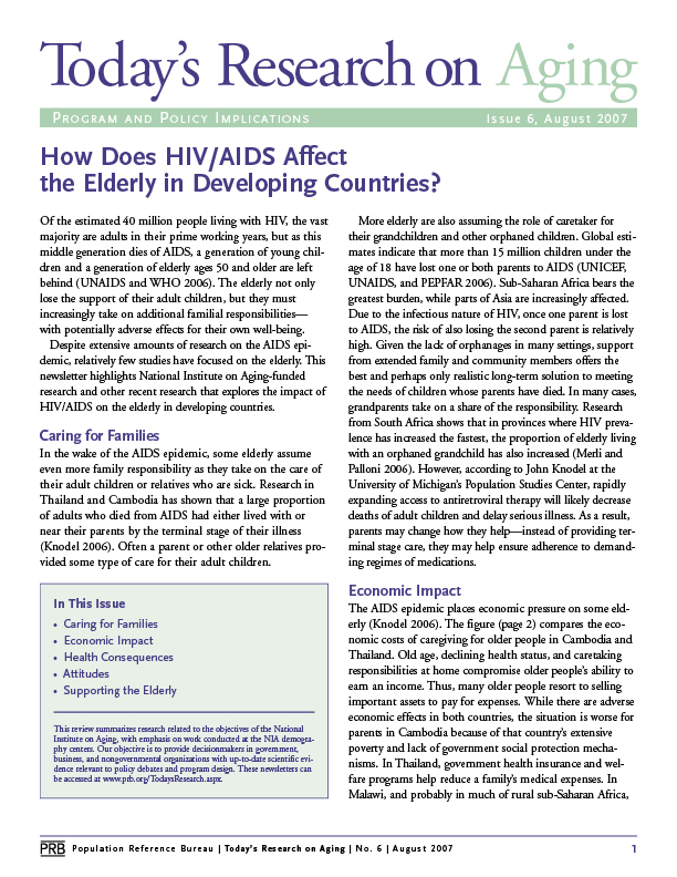 This issue, “How Does HIV/AIDS Affect the Elderly in Developing Countries?” highlights National Institute on Aging-funded research and other recent research that explores the impact of HIV/AIDS on the elderly in developing countries, especially the economic and health consequences.