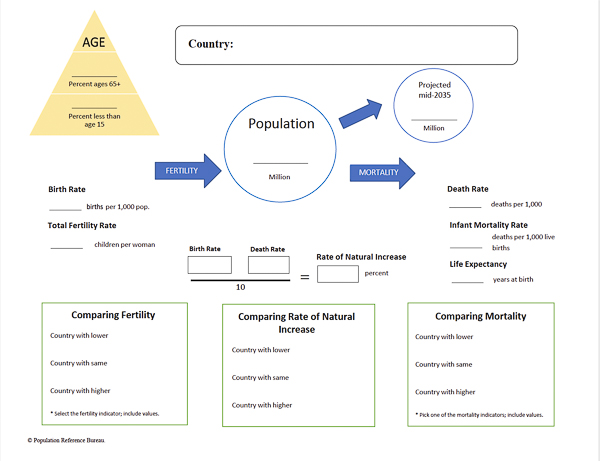 (2020) PRB’s World Population Data Sheet is an excellent reference and data analysis tool. This series of short activities allows students to access a wealth of data on the world, regions, and individual countries, and develop their data literacy skills and knowledge of geography.