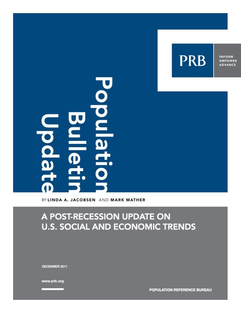 This Population Bulletin Update is a follow-up to PRB’s 2010 Population Bulletin, “U.S. Economic and Social Trends Since 2000,” and provides new data and analysis on the ongoing impact of the Great Recession on unemployment, poverty, housing, education, the status of young adults, and the birth rate in the United States.