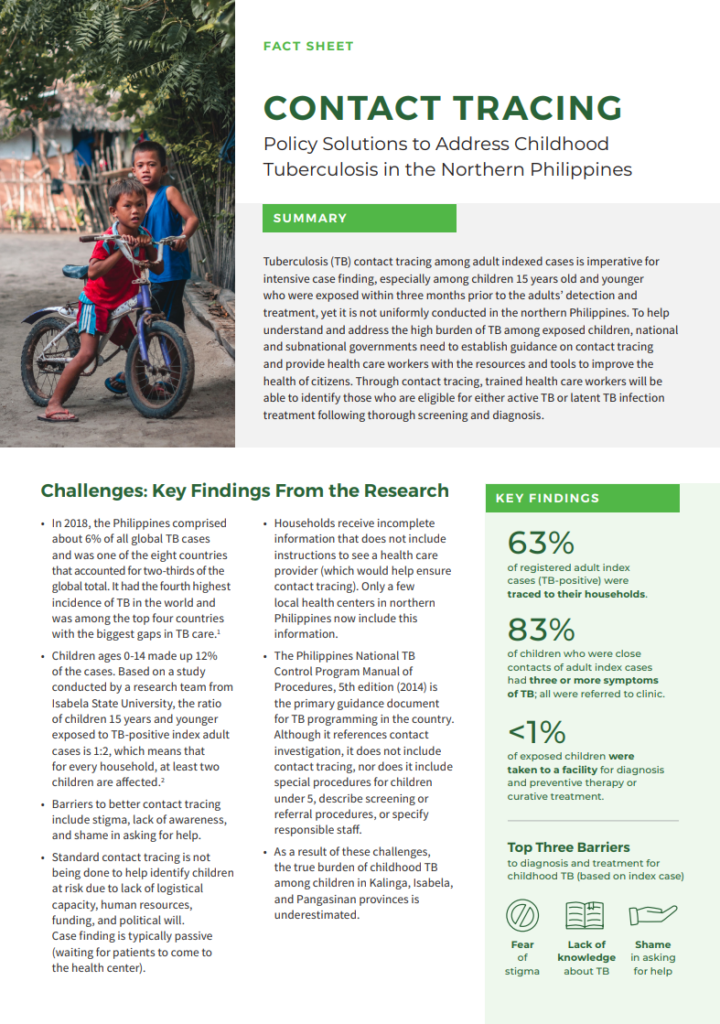 Contact Tracing: Policy Solutions to Address Childhood Tuberculosis in the Northern Philippines