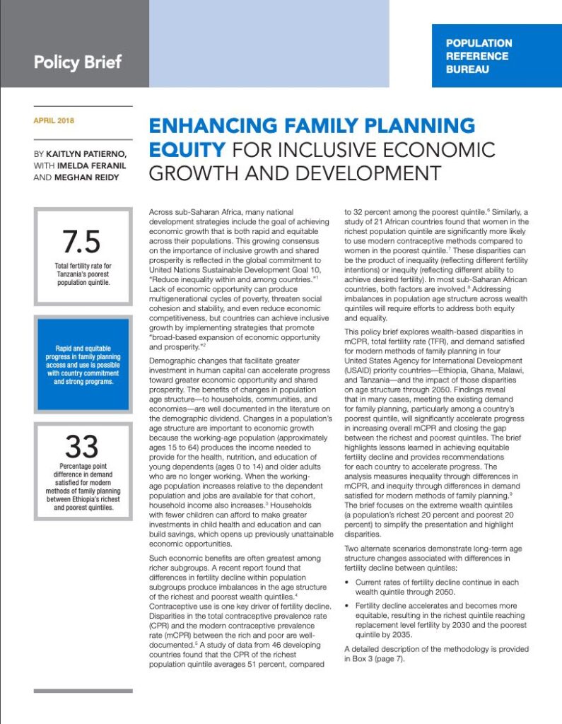 Enhancing Family Planning Equity for Inclusive Economic Growth and Development