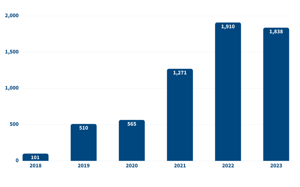 Total extra days patients with Medicare Advantage spent in the hospital, compared to those with traditional Medicare, 2018–2023 (in thousands)