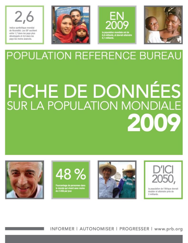 La Fiche de données sur la population mondiale – 2009 publiée par le Population Reference Bureau et son rapport de synthèse contiennent des informations détaillées sur les schémas démographiques par pays, par région et pour le monde entier.