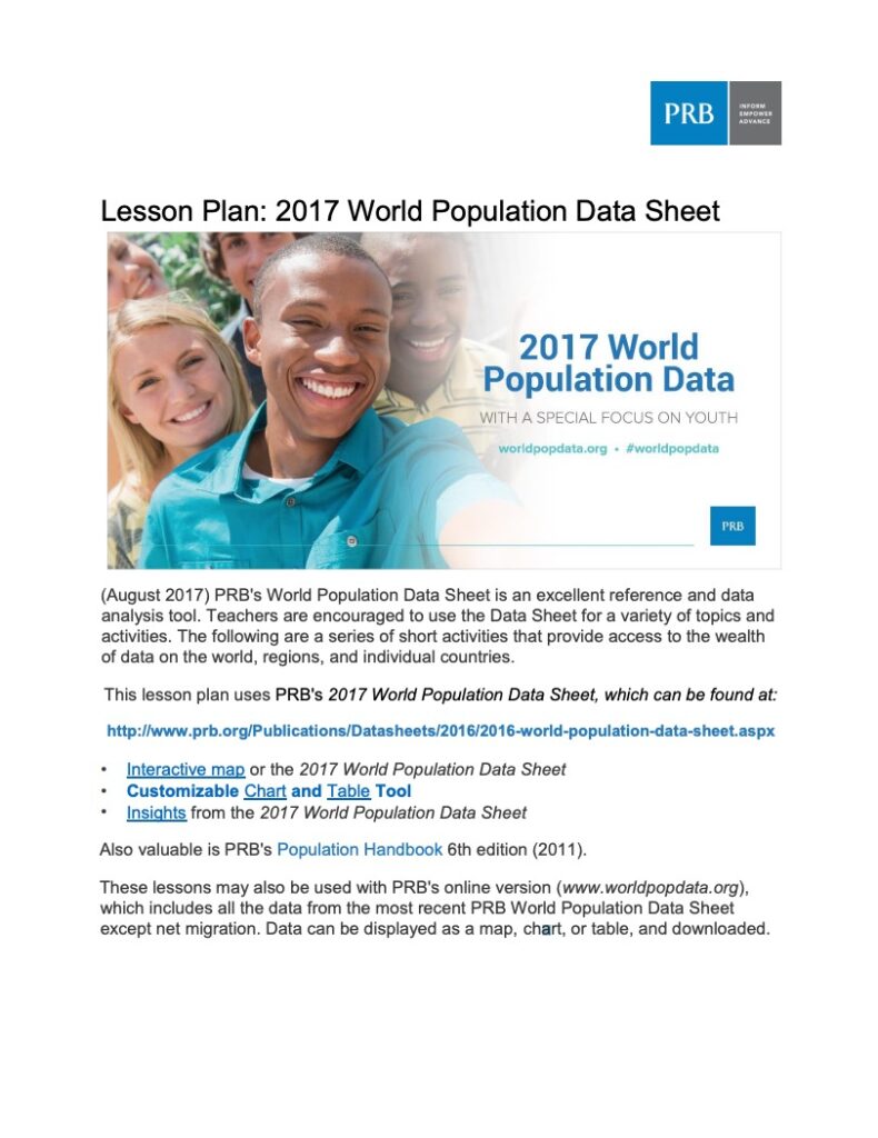 Lesson Plan: 2017 World Population Data Sheet