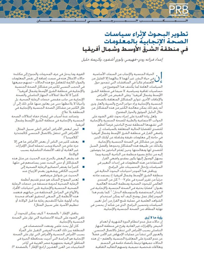 Policy Brief. Advancing Research to Inform Reproductive Health Policies in the Middle East and North Africa (Arabic)