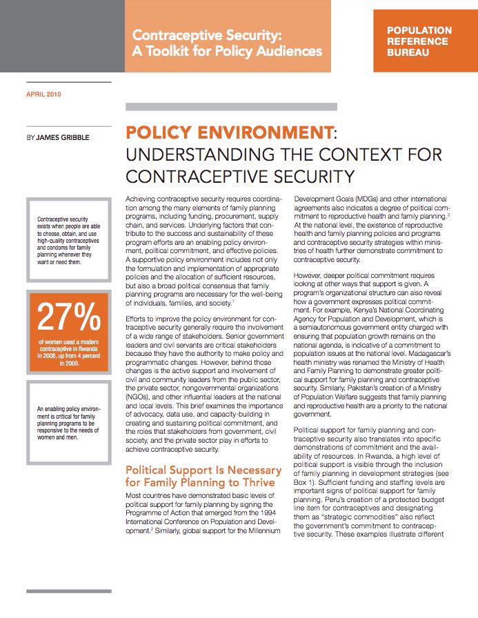 - Contraceptive Security For Policy Audiences: An Overview (PDF: 558KB)