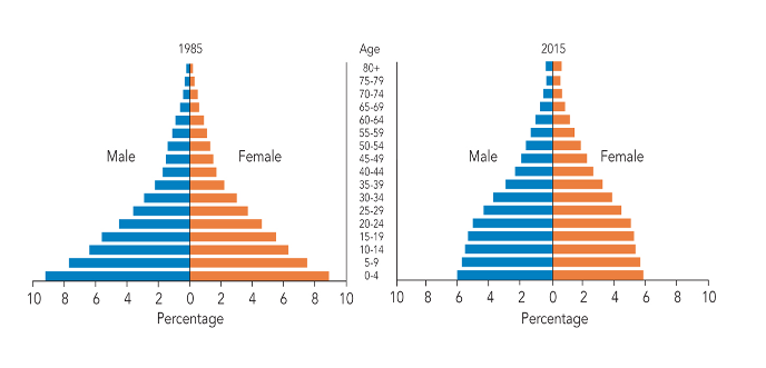 Africa has the largest share of low-income countries, but recent survey data from Rwanda are encouraging. According to the 2010/2011 Household Living Conditions Survey, which provides an international benchmark for assessing the prevalence of poverty, Rwanda has experienced a 12 percent reduction in poverty since 2006. That equals 200,000 households, or about 1 million people, elevated above the poverty line. During the same period, maternal and infant mortality rates declined, secondary school enrollments doubled, and the total fertility rate dropped from 6.1 to 4.6 children per woman—fueled by the rapid uptake of family planning.2 Political commitment and an active citizenry are working together to help forge a healthier and more-educated population.