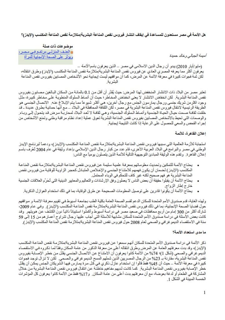 Report. Are Imams in Egypt Prepared to Help Stop the Spread of HIV/AIDS? (Arabic)