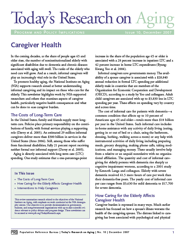 Today’s Research on Aging, Issue 10: Caregiver Health
