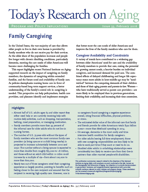 Today’s Research on Aging, Issue 33: Family Caregiving