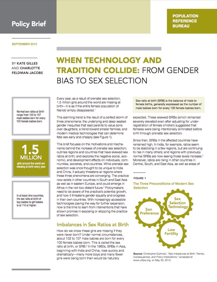 This alarming trend is the result of a perfect storm of three phenomena: the underlying and deep-seated gender inequities that lead parents to value sons over daughters; a trend toward smaller families; and modern medical technologies that can determine fetal sex early and cheaply.